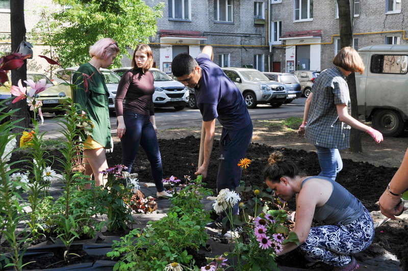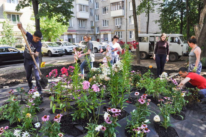 В одном из дворов в Даниловском районе высажены цветы, принимавшие участие во флористических конкурсах фестиваля «Московское лето. Цветочный джем».