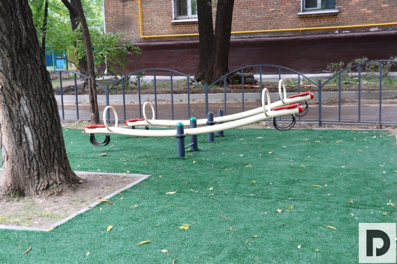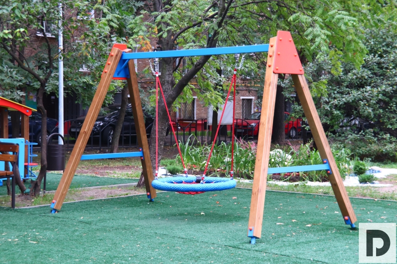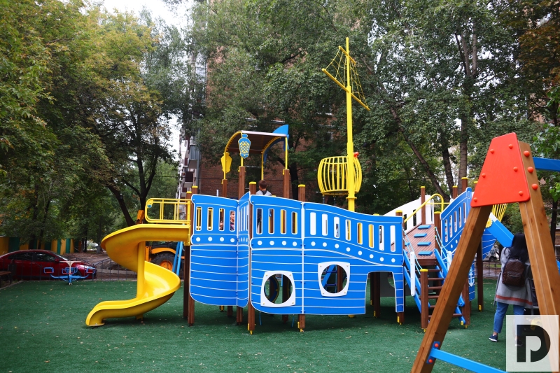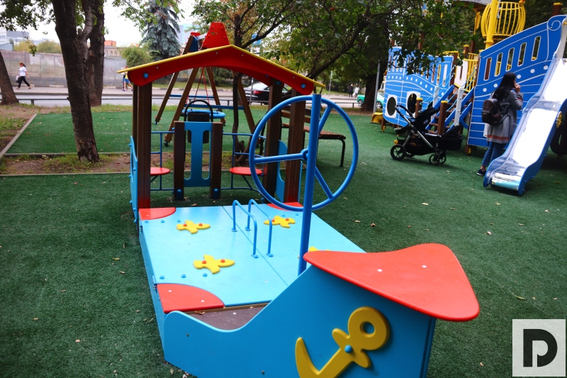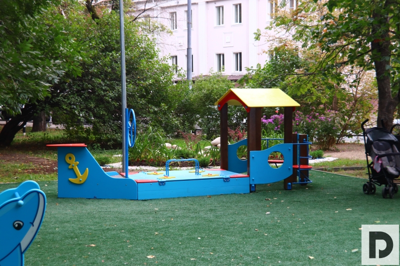 Так, по двум адресам были установлены две детские площадки: «Корабль» и «Городок», чтобы играть было интересно не только мальчикам, но и девочкам. На обоих участках положили специальное синтетическое покрытие, чтобы даже при падении у юных жителей Даниловского района было меньше травм.