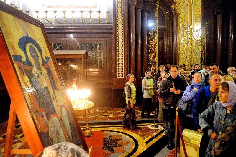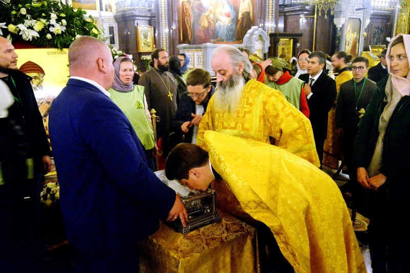 Молодежный отдел Московской городской епархии организовал и провел соборный молебен у мощей святителя Спиридона Тримифунтского в Храме Христа Спасителя в среду, 10 октября.
