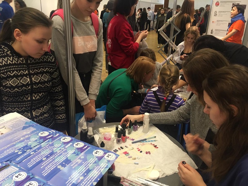 Как отметила заведующая отделением дополнительного образования в учреждении Лариса Анисимова, площадка колледжа собрала большое количество интересующихся профессиями индустрии красоты. Делегация студентов колледжа № 34 продемонстрировала творческие мастер-классы по «изготовлению причесок из кос» и «нейл-дизайну ногтей».