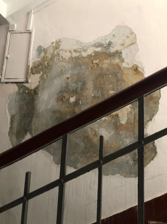 По словам собственников, на втором этаже ремонт был проведен некачественно, а покраска стен оставляла желать лучшего. Из-за недобросовестно выполненной работы на стене вновь появился грибок.