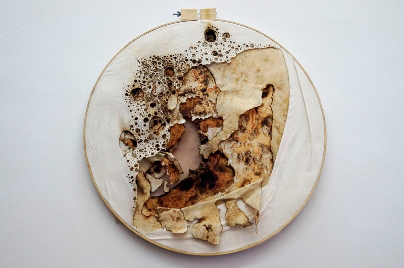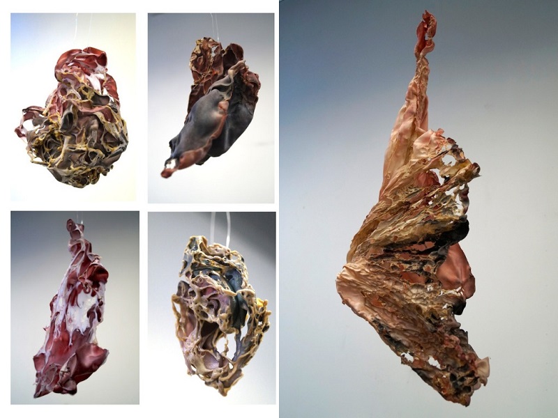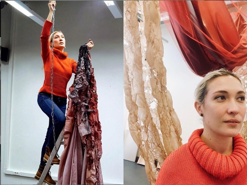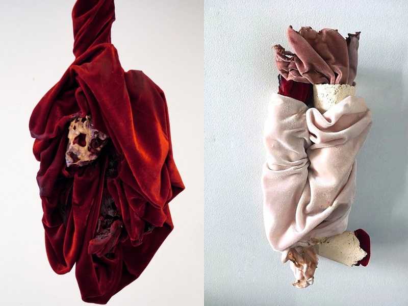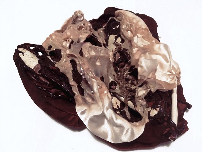 — Вообще я вижу в скульптуре огромное количество смежных областей для изучения, и большое поле для экспериментирования, — поделилась участница выставки. — По большей части все мои художественные техники связаны с трансформацией. Я использую такие методы как плавление тканей огнем, взрывание глины при обжиге, растворение в воде. Ну и соответственно, когда я выпускалась из «Британки», свой диплом я как раз защищала по теме «Созидательное разрушение».