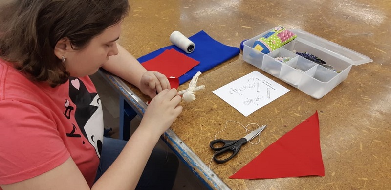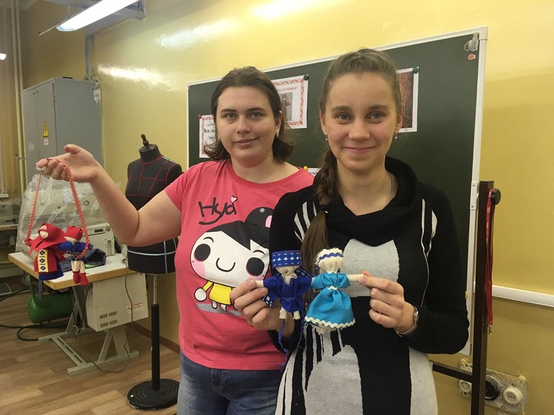 На одном из занятий секреты изготовления таких поделок узнали и студенты Технологического колледжа № 34. Под руководством педагога они научились делать куклы из экологически чистых тканей. Сначала участники мастер-класса отбирали образцы материалов с учетом компетенции «Эксперт по здоровой одежде», выясняли, какими полезными свойствами обладают натуральные ткани. Далее начался самый интересный этап занятия — творческий.