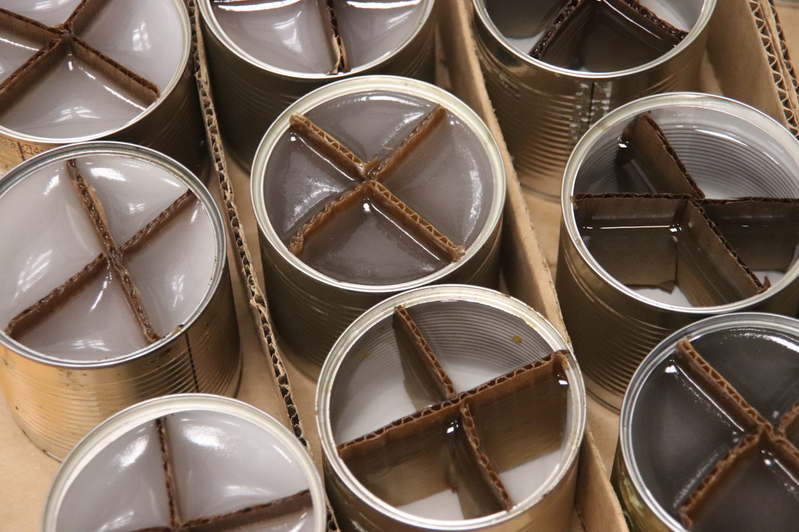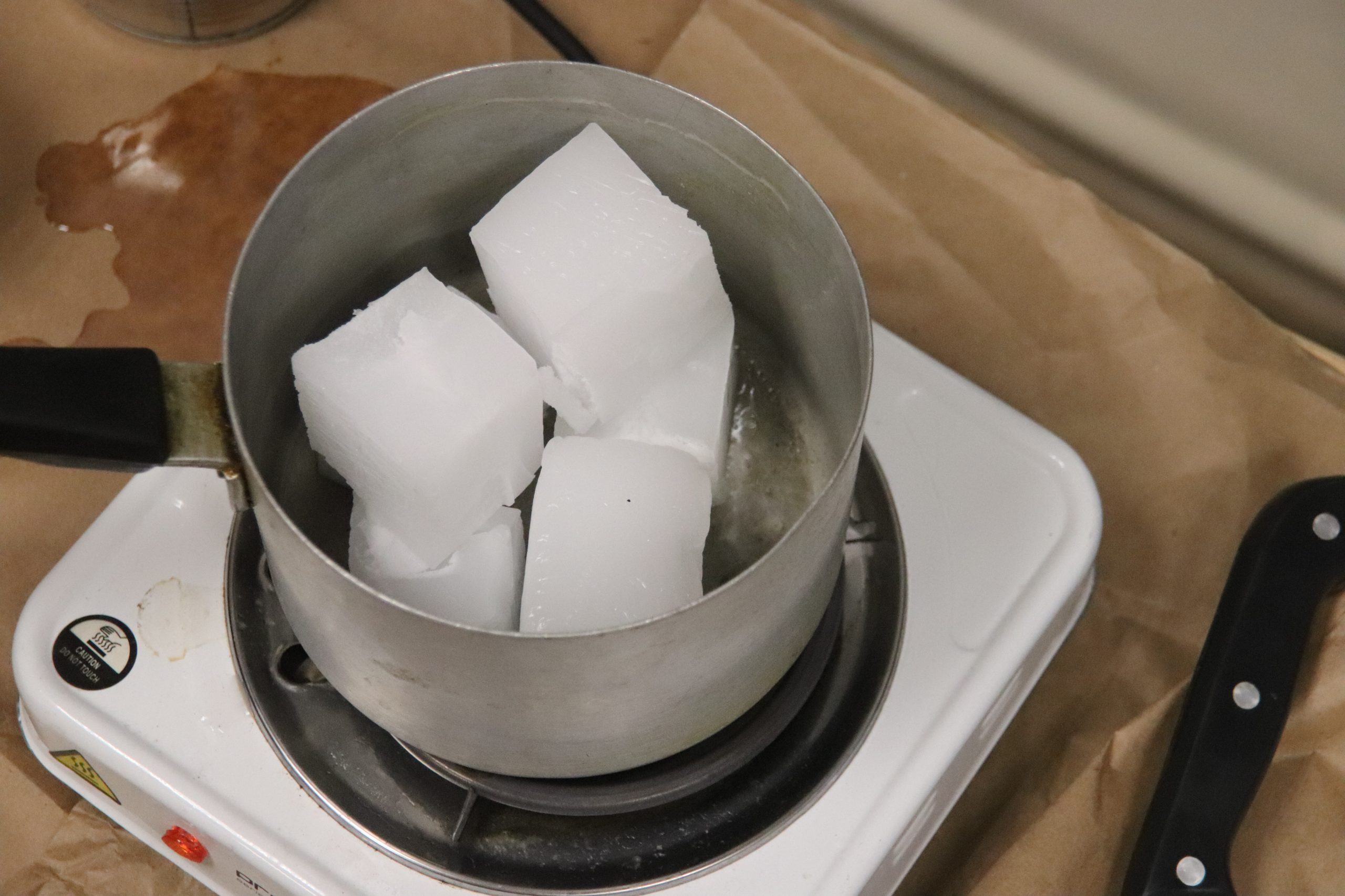 Предварительно каждый участник вырезал из картона основу под фитили, формировал их, а потом размещал в жестяных банках. А в это время ведущие растапливали парафин, чтобы залить его в заготовки.