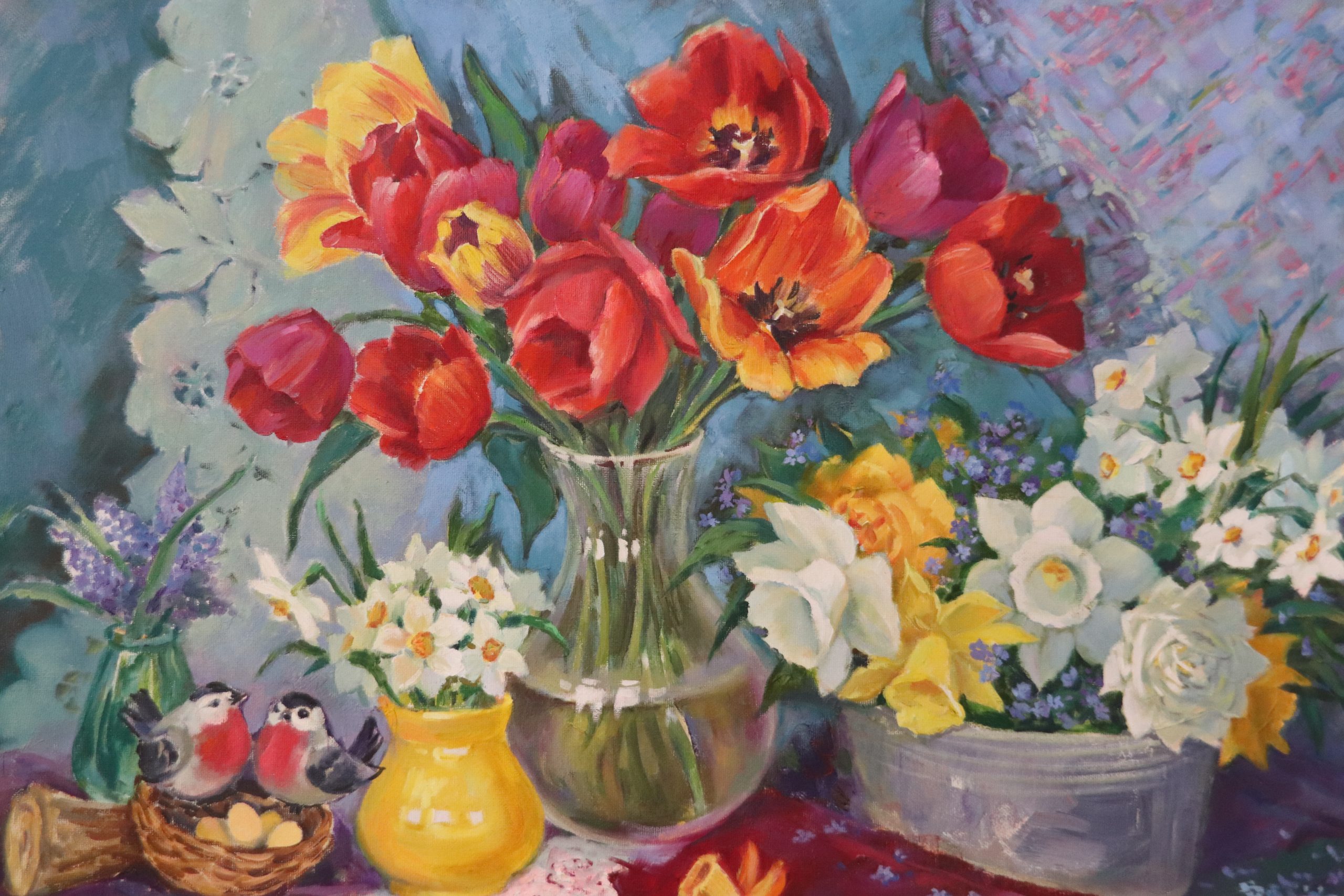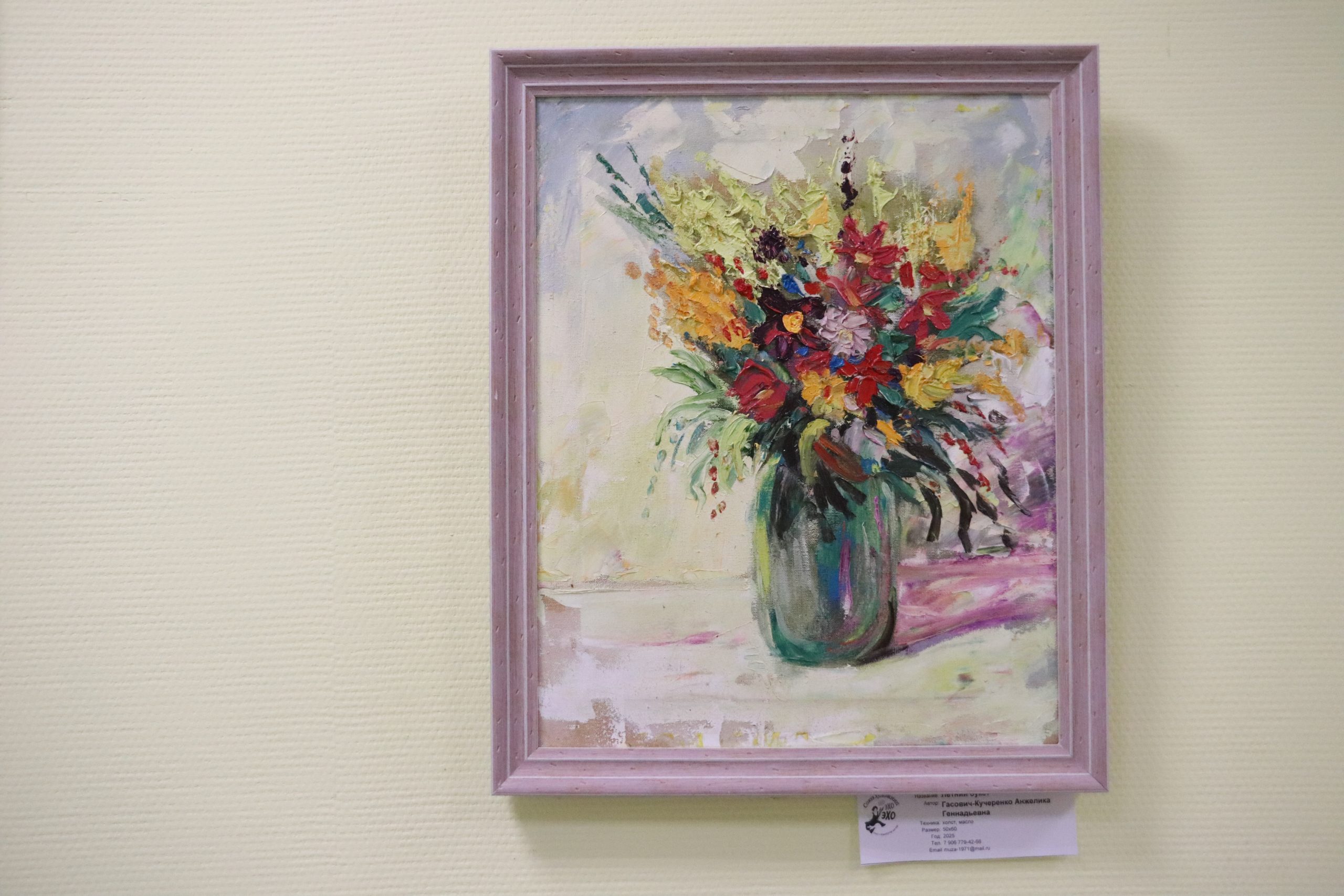 Так, картины представили члены Союза художниц «ЭХО». Посетители смогут увидеть полотна художниц, выполненные в разных жанрах и стилях: от абстракции до реализма, от импрессионизма до наивного искусства, от сюрреализма до символизма. Отметим, что на сегодняшний день выставка пользуется большой популярностью у жителей Даниловского района. Ознакомиться с экспозицией можно в часы работы культурного учреждения.
